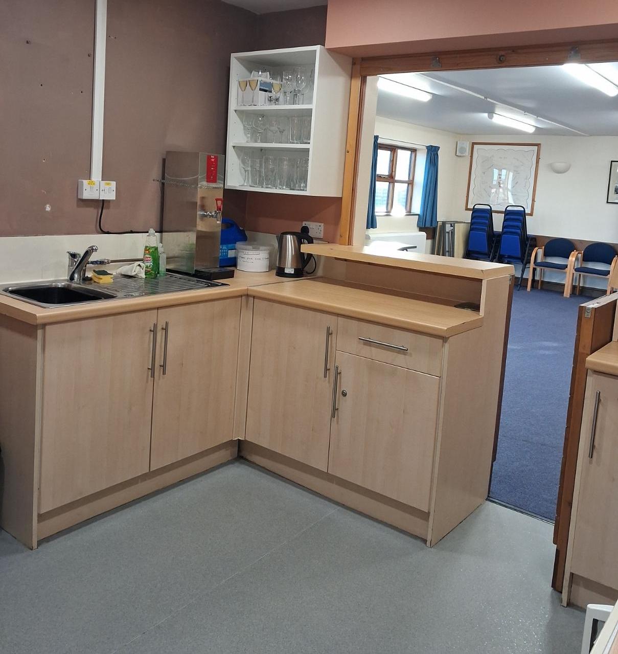 The Onyx Room is a cozy carpeted area catering for up to 35 people equipped with chairs and folding tables, and a shutter/ hatch into the kitchen. This smaller kitchen has a machine for INSTANT BOILING WATER, and a glass washer. There are no cooking facilities with this room hire.