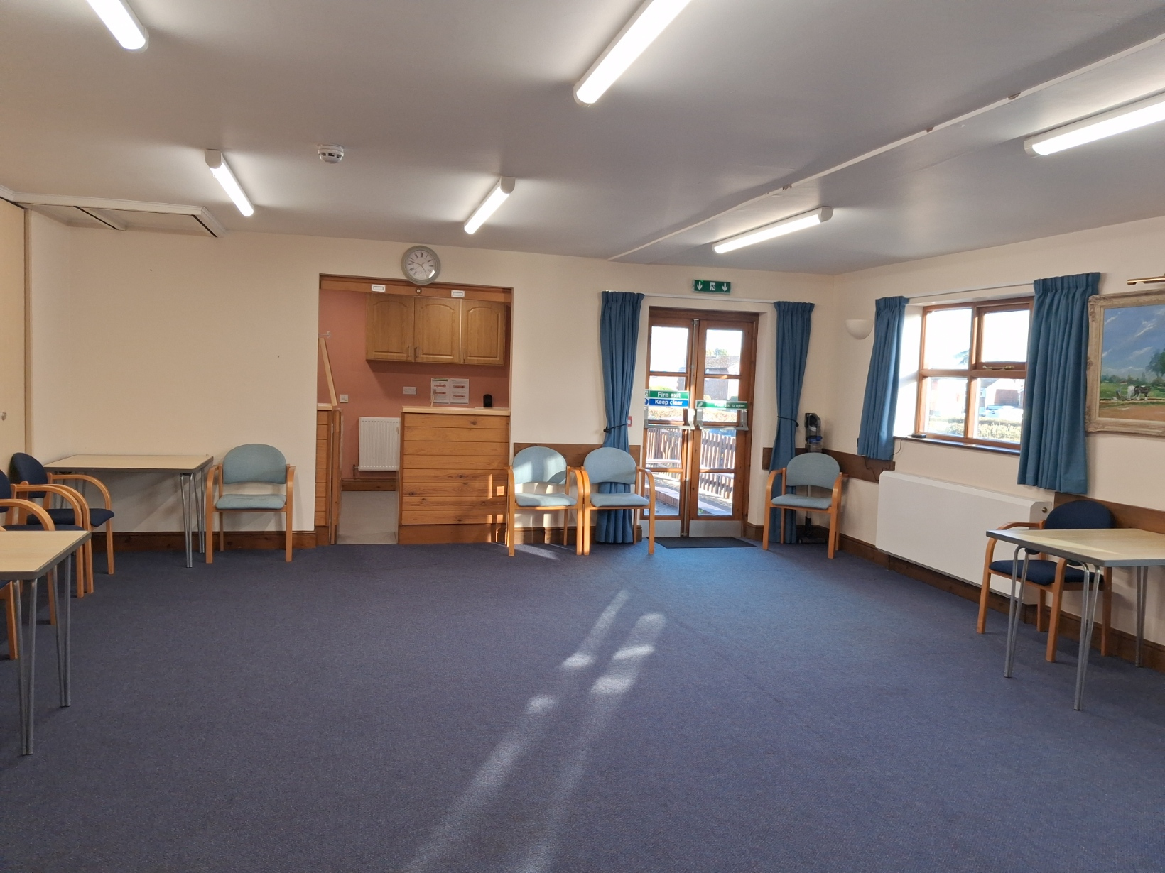 The Onyx Room is a cozy carpeted area catering for up to 35 people equipped with chairs and folding tables, and a shutter/ hatch into the kitchen. This smaller kitchen has a machine for INSTANT BOILING WATER, and a glass washer. There are no cooking facilities with this room hire.